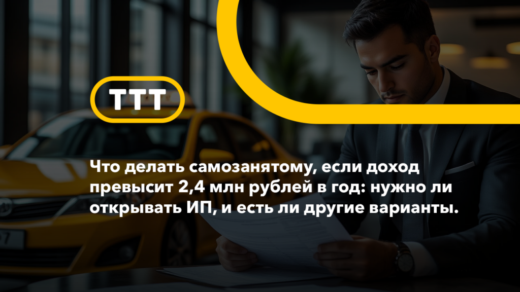 Можно временно оформить трудовой договор с таксопарком. Однако следует учитывать: При превышении дохода в 2,4 млн рублей регистрация ИП — ос