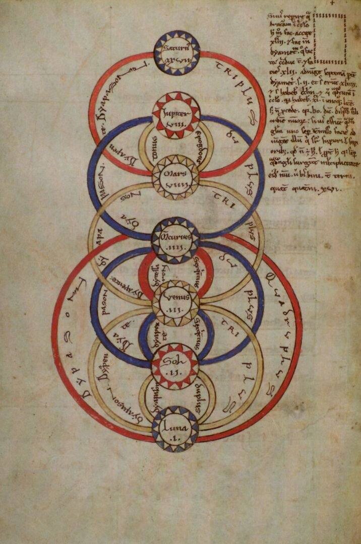 Только древние манускрипты, посвященные устройству мира. Перед вами — рукопись диалога Платона «Тимей», хранящаяся в Бодлианской библиотеке в Оксфорде, и некоторые из этих таинственных схем призваны всего лишь объяснить желающим расположение звезд и планет.