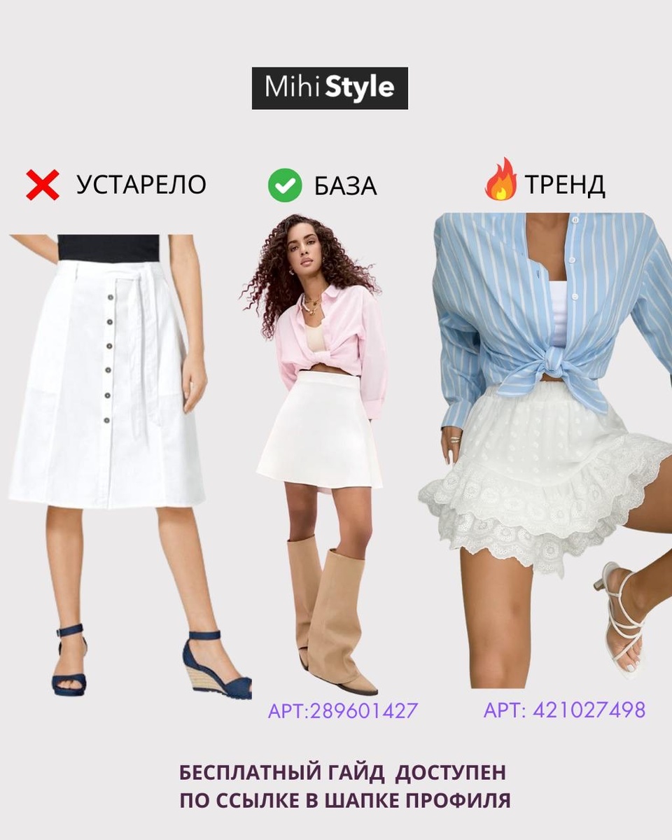 Мода не стоит на месте — и это её магия. То, что ещё пару сезонов назад считалось актуальным, сегодня может уже визуально «тянуть вниз» весь образ. Чтобы не теряться в море трендов, важно научиться быстро считывать сигналы: что устарело, что можно оставить как нейтральную базу, а что уверенно попадает в категорию must-have сезона. Этот пост — ваш визуальный навигатор. Сравниваем, анализируем и обновляем гардероб стильно и с умом. 👗 Юбки 👗 Летние платья 👗 Платья на выход 👕 Свитшоты 👚 Плиссированные юбки 👕 Лонгсливы 🧥 Жилеты 🧶 Кардиганы 👖 Джинсы 🧥 Жакеты Если вы хотите выглядеть современно — не обязательно слепо следовать трендам. Достаточно избавиться от визуально устаревших элементов и добавить парочку актуальных акцентов. Мода — это не каприз, а инструмент выражения себя. ❓А что бы вы сейчас отнесли к своим базовым вещам, а что пора заменить? Напишите в комментариях — обсудим и обновим гардероб вместе!