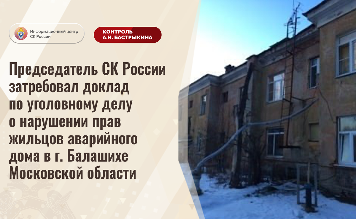 Председатель СК России затребовал доклад по уголовному делу о нарушении прав жильцов аварийного дома в г. Балашихе Московской области