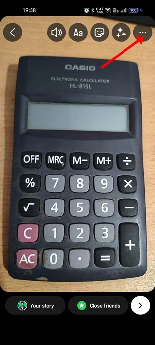 2. На экране публикации истории нажмите на три точки в правом верхнем углу.