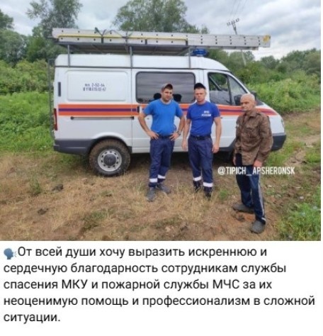 Жительница Апшеронска разместила в социальных сетях благодарность в адрес сотрудников Главного управления МЧС России по Краснодарскому краю. Она выразила "искреннюю и сердечную благодарность... за их неоценимую помощь и профессионализм в сложной ситуации". "Особая признательность Землянкину Андрею, Мартиросяну Вадиму, Поддубному Сергею, Куцевалову Алексею, а также сотруднику пожарной службы МЧС Василию за их самоотверженную работу, неравнодушие и профессионализм", - говорится в посте. 18 июля пропал 58-летний брат женщины, который является инвалидом II группы. "Из-за особенностей своего здоровья он не всегда способен осознавать, где находится, и не всегда понимает, что нуждается в помощи окружающих. Владимир ушёл ночью, одетый лишь в домашнюю одежду, без каких-либо запасов еды и воды, без сменной одежды. Мы сразу же забили тревогу, и к поискам подключилось множество людей — не только родственники и друзья, но и совершенно незнакомые, но неравнодушные люди. Каждый помогал, чем мог, - на