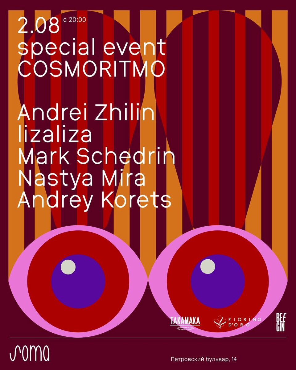 COSMORITMO x Soma | 02.08 20:00 - till late Хауса много не бывает! Поэтому вновь встречаемся во дворе Soma на танцы под сеты Andrey Zhilin, Mark Schedrin, Nastya Mira, Andrey Korets и гостья из Берлина — lizaliza. Усидеть на месте будет сложно! 🎫 Билеты по ссылке FC/DC, 21+ 📆 2 августа, с 20:00 📍 Soma, Москва, Петровский бульвар, 14
