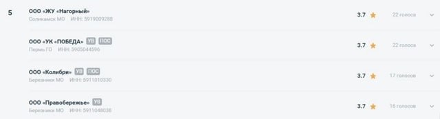 Π΄ΠΎΠΌΠΎΠ². ΠΠΎ ΠΈΡΠΎΠ³Π°ΠΌ Π³ΠΎΠ»ΠΎΡΠΎΠ²Π°Π½ΠΈΠ΅ Π² ΡΠΎΠΏ-5 Π²ΠΎΡΠ»ΠΈ: ΠΠΠ Β«Π‘ΠΠ£ β2 Π‘Π°ΡΡΡΠ½-Π Β», Π½Π°Π±ΡΠ°Π²ΡΠ΅Π΅ 4,5 Π±Π°Π»Π»Π°; ΠΠΠ Β«Π£Π ΠΠ°ΠΌΡΠΊΠΈΠ΅ ΠΎΠ³Π½ΠΈΒ», ΠΠΠ Β«Π£ΠΏΡΠ°Π²Π»ΡΡΡΠ°Ρ ΠΊΠΎΠΌΠΏΠ°Π½ΠΈΡ ΠΡΠ°Π²Π»Π΅Π½ΠΈΠ΅Β» (Π²ΡΠ΅ β ΠΠ΅ΡΠΌΡ), ΠΠ£Π Β«ΠΠ ΠΠ°ΡΠ°Π½ΡΒ» ΠΈΠ· ΠΠΠ’Π Β«ΠΠ²Π΅Π·Π΄Π½ΡΠΉ β ΠΏΠΎ 4 Π±Π°Π»Π»Π°; ΠΠΠ Β«Π£Π ΠΠ²Π°Β» β 3,9 Π±Π°Π»Π»Π°. 5οΈβ£ΠΠΎΠΌΠΌΡΠ½Π°Π»ΡΡΠΈΠΊΠΈ ΠΠ΅ΡΡ