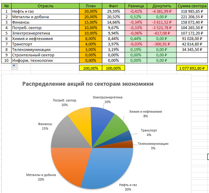 Далее, каждому сектору я присвоил плановую долю. Тут была полная импровизация.
