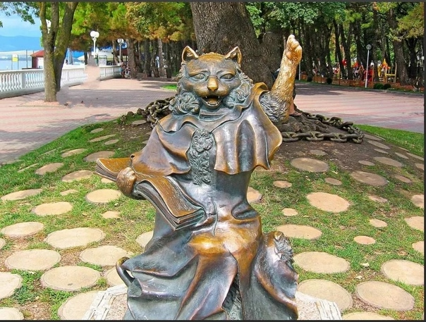 Статуя «Кот ученый», посвященная животному из знаменитой поэмы Пушкина, появилась в Геленджике в 2008 году.