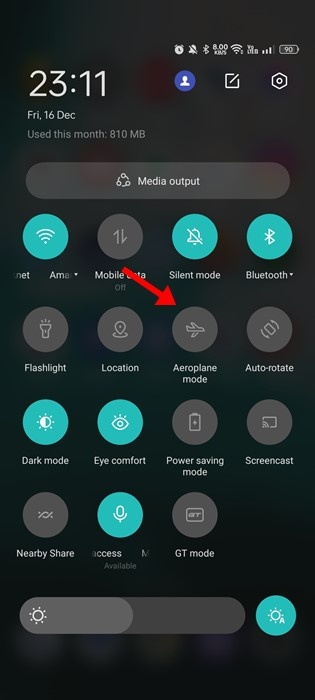 После включения снова нажмите значок «Режим полета», чтобы отключить функцию и восстановить сетевые подключения.