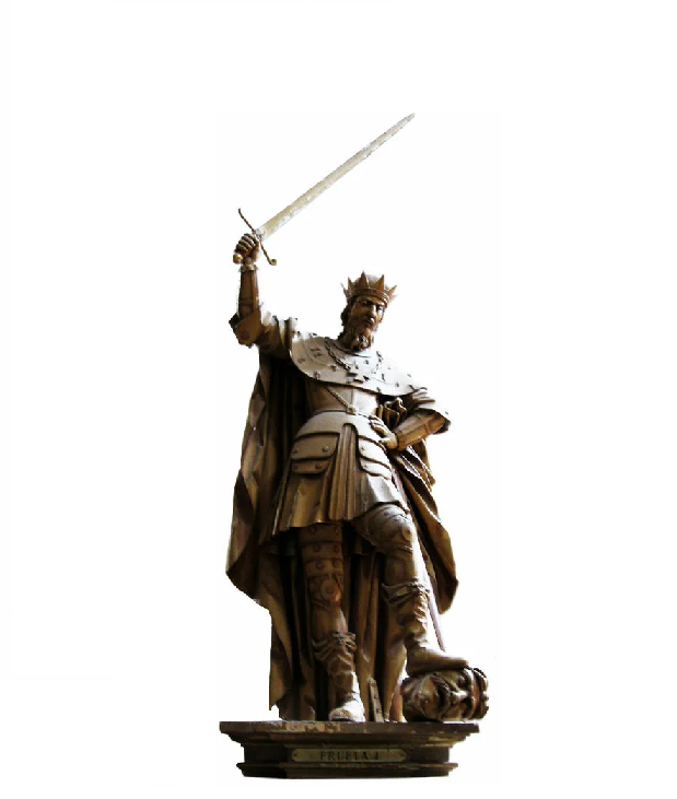 В 757 году, после смерти Альфонсо I Католика, Астурией стал править Фруэла I, которого в народе прозвали «Жестоким». Сразу хочется уточнить, по какой причине он получил такое прозвище. Самые известные причины были в том, что король имел вспыльчивый характер, был подозрителен и жесток. За время своего правления король подавил восстание в Галисии, после чего, согласно «Хронике Альфонсо III», приказал перебить 54 000 мусульман, начальнику конницы Умару отрубил голову, а местный народ подчинил себе. Лично мне число убитых кажется очень сильно преувеличенным. Но если существует такое упоминание, убито было наверняка немало. В тот же период он подавил восстание басков и женился на взятой в плен девушке по имени Муния. Рождённого от неё сына он назвал в честь своего отца и хотел, чтобы он стал его наследником. И народ и знать Фруэлу не любили, зато славой пользовался брат короля — Вимирано. Фруэла, понимая, что его планы сделать следующим правителем Астурии своего сына могут не сбыться, уби