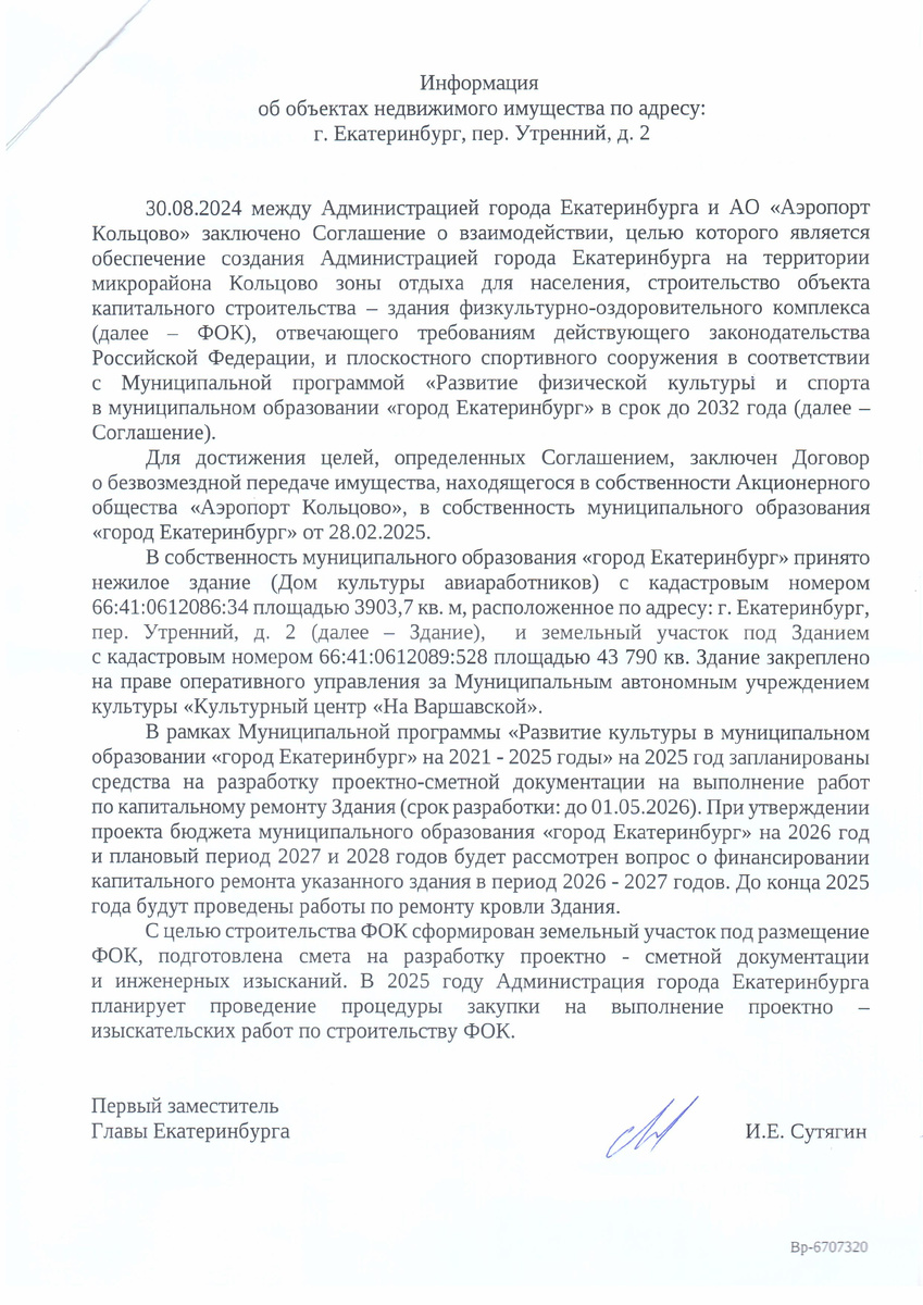 В том году аэропорт «Кольцово» передал мэрии здание ДК и соседний земельный участок