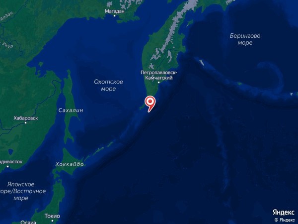 В 392 км к югу от Петропавловска-Камчатского, Россия.