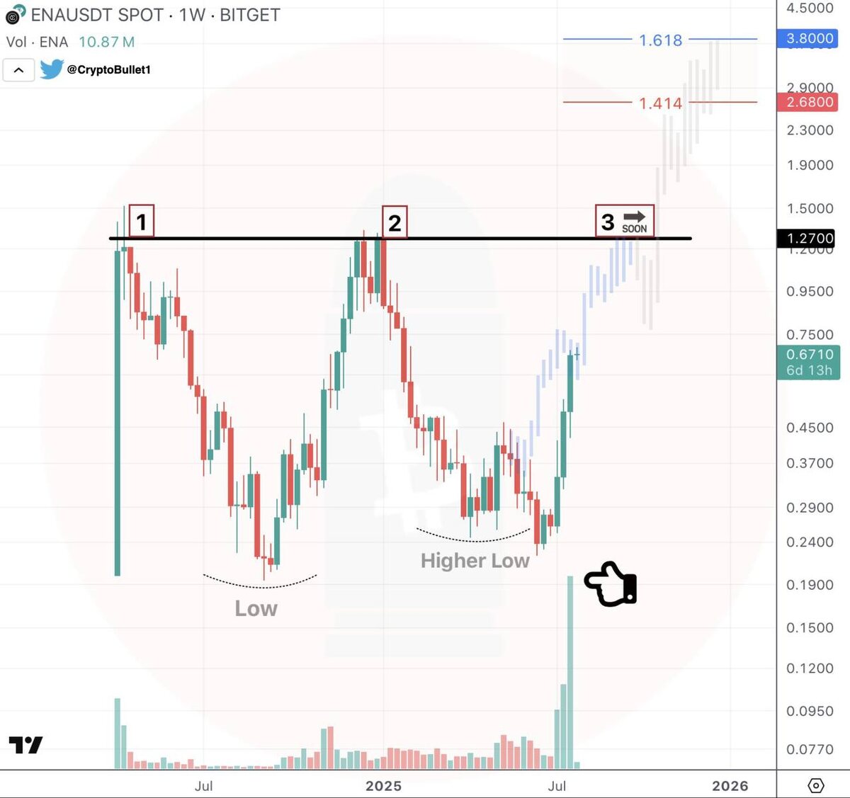 Если ENA пробьёт, за ней могут пойти и другие слабые мемкоины, которые не стреляли. Следите за структурами.