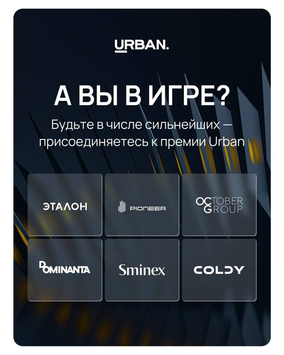 До Московской премии URBAN — 119 дней …. Кто уже в игре? PIONEER, October Group, «Эталон», Sminex, Coldy и Dominanta снова с нами! Эти компании не первый год участвуют в премии и возвращаются, чтобы подтвердить свой высокий уровень. URBAN — это признание рынка недвижимости, архитектурного сообщества и медиа. 🤍В этом году в премии представлено более 40 номинаций. Это шанс заявить о себе громко и быть услышанным. Присоединиться к тем, кто формирует будущее девелопмента, можно по ссылке