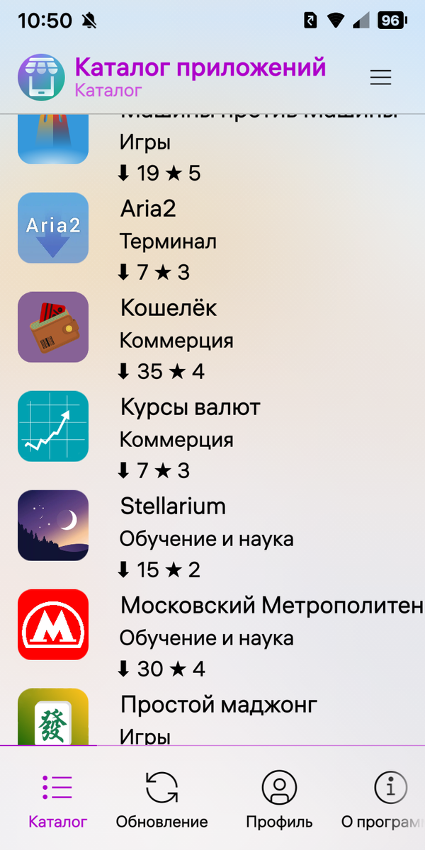 Здравствуйте дорогие гости и подписчики нашего канала! Сегодня мы с вами обсудим про замечательный народный магазин приложений от энтузиаста Леонида Юрасова. Программа носит название "Маркет", или, как ее называют в народе, "Каталог приложений". На данный момент для ОС Аврора существуют 3 каталога приложений: Программа "Маркет" была создана Леонидом Юрасовым, известным программистом и энтузиастом. Она вышла 21 ноября 2024 года. Приложение предлагает каталог программ, многие из которых- это портированные энтузиастами игры и приложения, изначально созданные для других операционных систем и не только. Открываем приложение "Маркет": Перед вами главная страница каталога приложений для ОС Аврора. Здесь вы найдете удобный интерфейс, который заметно отличается от программы RuStore. Сейчас доступно 124 приложения для установки на ваше устройство. На нижнем тулбаре находятся кнопки для переключения вкладок. Это ключевое отличие от RuStore в ОС Аврора. В правом верхнем углу находится кнопка для в