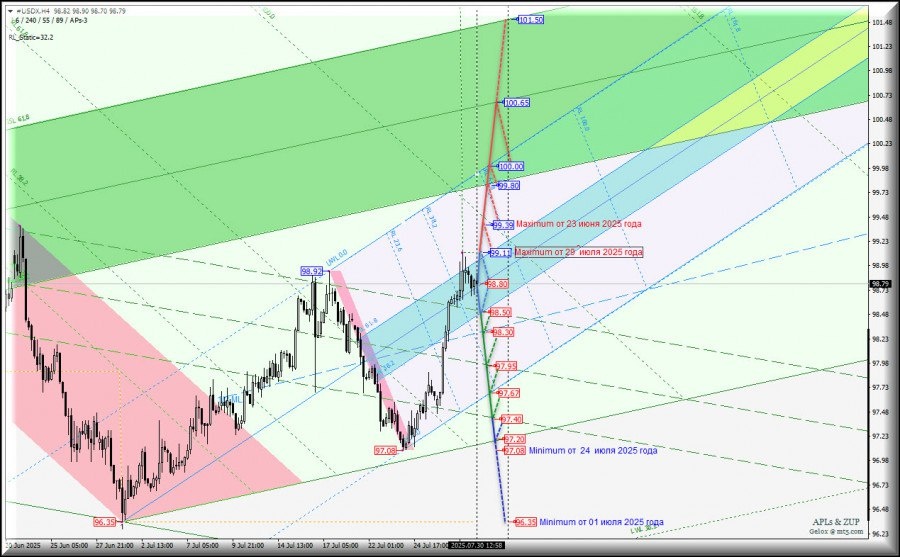 https://basechop.ru/wordpress/?p=51774 Операционный масштаб Minute (таймфрейм h4) #USDX – h4 – обзор вариантов движения с 30 июля 2025 г. Предыдущий обзор US Dollar Index (таймфрейм h4) от 25.07.2025 г. 13:20 ____________________ US Dollar Index Дальнейшее развитие движения #USDX-h4 с 30 июля 2025 года станет проистекать исходя из отработки и направления пробоя границ зоны равновесия (98.50 – 98.80 – 99.11 (maximum от 29 июля 2025 года)) вил младшего операционного масштаба Minuette-h1. Восходящее движение. При пробое верхней границы ISL61.8 (уровень сопротивления 99.11 – maximum от 29 июля 2025 года) зоны равновесия вил младшего операционного масштаба Minuette-h1 станет актуальным продолжение восходящего движения индекса доллара к целям: – maximum 99.39 от 23 июня 2025 года; – нижняя граница ISL38.2 (99.80) зоны равновесия вил старшего операционного масштаба Minute-h4; – конечная линия FSL Minuette-h1 (100.00); – срединная линия Median Line Minute-h4 (100.65). Нисходящее …