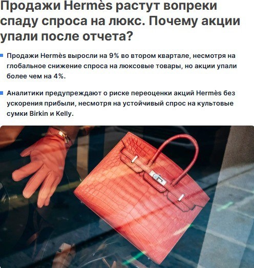ΠΏΠΎΠΊΡΠΏΠ°ΡΠ΅Π»Π΅ΠΉ. ΠΠ΅ΡΠΌΠΎΡΡΡ Π½Π° ΠΏΠΎΠ·ΠΈΡΠΈΠ²Π½ΡΠΉ ΠΎΡΡΠ΅Ρ, Π°ΠΊΡΠΈΠΈ HermΓ¨s ΡΠΏΠ°Π»ΠΈ Π±ΠΎΠ»ΡΡΠ΅ ΡΠ΅ΠΌ Π½Π° 4% Π½Π° ΡΠΎΡΠ³Π°Ρ