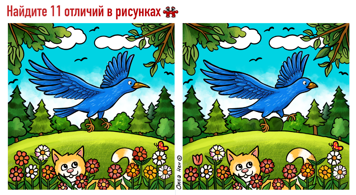 Тест на внимательность + упражнение для памяти. 11 отличий на сказочных картинках про синюю птицу