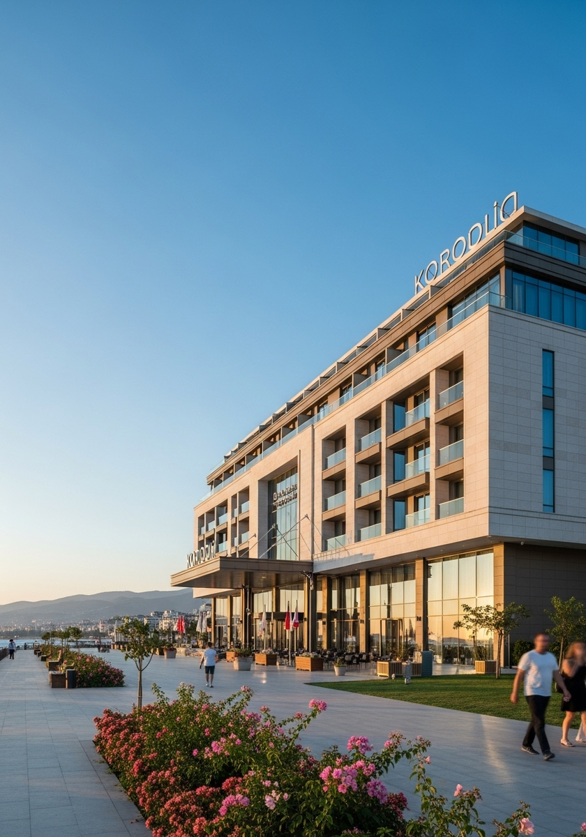 Современный отель в деловом районе Байраклы, напротив станции метро Салхане. Расположен в коммерческой части города с видом на Эгейское море. Удобное расположение для деловых поездок и доступ к транспортной сети. Рядом находятся торговые центры и офисные здания.