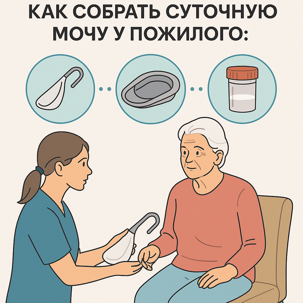 Сбор суточной мочи — простая, но важная медицинская процедура. Часто её назначают пожилым людям: для оценки функции почек, уровня сахара, белка, гормонов и других показателей. Но когда человек — не совсем самостоятельный, возникают трудности. Рассказываем, как правильно собрать анализ, чтобы не испортить результат. Это весь объём мочи, выделенной человеком за 24 часа. В ней содержатся важные диагностические маркеры. Ошибки в сборе могут привести к недостоверным результатам и, как следствие, к неправильному лечению. 1. Подготовьте ёмкости.