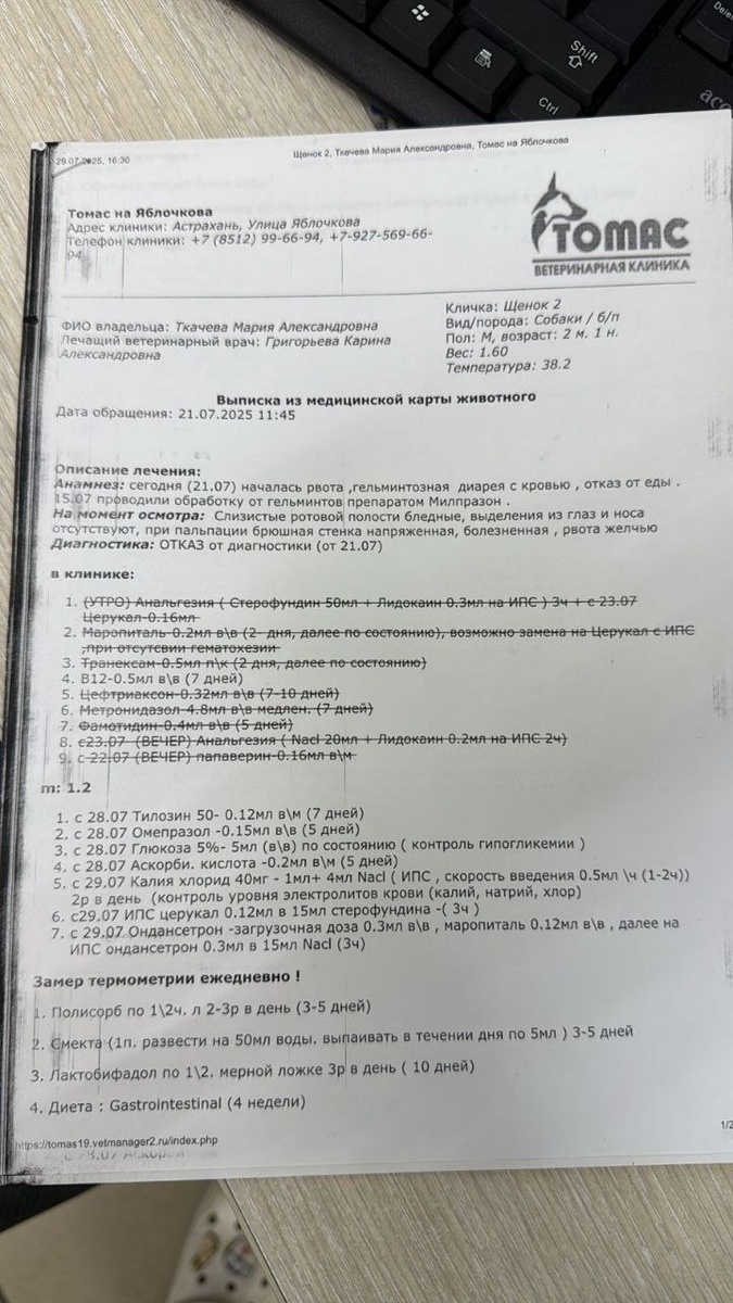 Астрахань. СРОЧНАЯ ПОМОЩЬ ЩЕНКАМ С ЭНТЕРИТОМ! 🆘 У щенков из Зеленги диагностирован энтерит. Уже погибли 3 малыша, один в критическом состоянии на стационаре, трое борются за жизнь на передержке. - Противорвотные (церукал) - Капельницы (раствор Рингера, глюкоза) - Гастропротекторы (квамател, омез) 2. Оплата лечения: - Стационар - Анализы - Капельницы и уколы на всех щенков Как помочь:👇👇👇👇👇 - Перевод на карту ВТБ: +7 988 064-13-08 (пометка "Благотворительность") Контакты для связи: - Телефон: +7 988 064-13-08 Важно Каждый час на счету! Энтерит развивается стремительно, щенки без лечения погибают за 1-3 дня. 💔 Без вашей помощи мы не справимся! Дайте шанс малышам выжить! P.S. Если вы не можете помочь финансово, сделайте репост — это тоже спасение! #щенки_зеленга