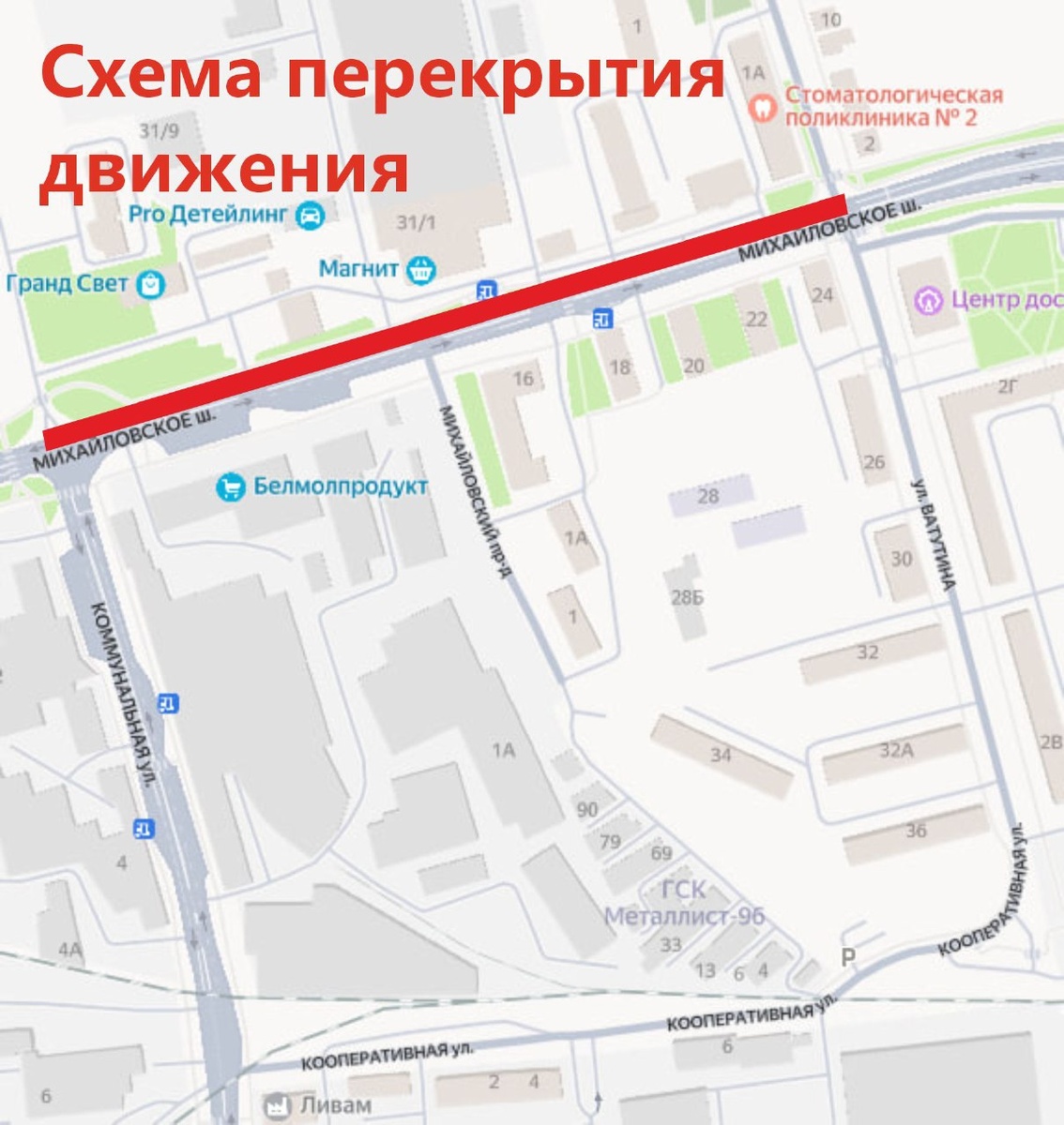 ❗️Из-за ремонта канализации на Михайловском шоссе ограничено движение транспорта