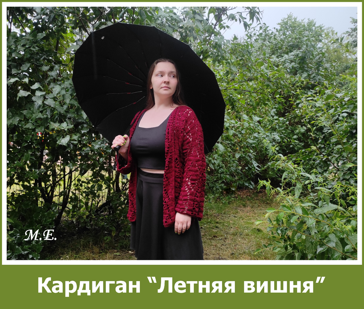(если есть "зимняя вишня", то должна быть и летняя!) Автор идеи этой работы - моя дочь. Она сама её задумала, сама искала в интернете модель, отвечающую её представлению. Вместе с дочкой мы выбирали нитки. Кардиган должен был быть тяжёлым и "с большими дырками". Всё складывалось удачно, пока дело не дошло до вывязывания узора... Но об этом я уже писала: как "победила" нерабочую схему из интернета, просто создав свою. Кардиган получился именно таким, каким был задуман. Мне очень приятно видеть эмоции дочери! Это - самая лучшая оплата моего труда!