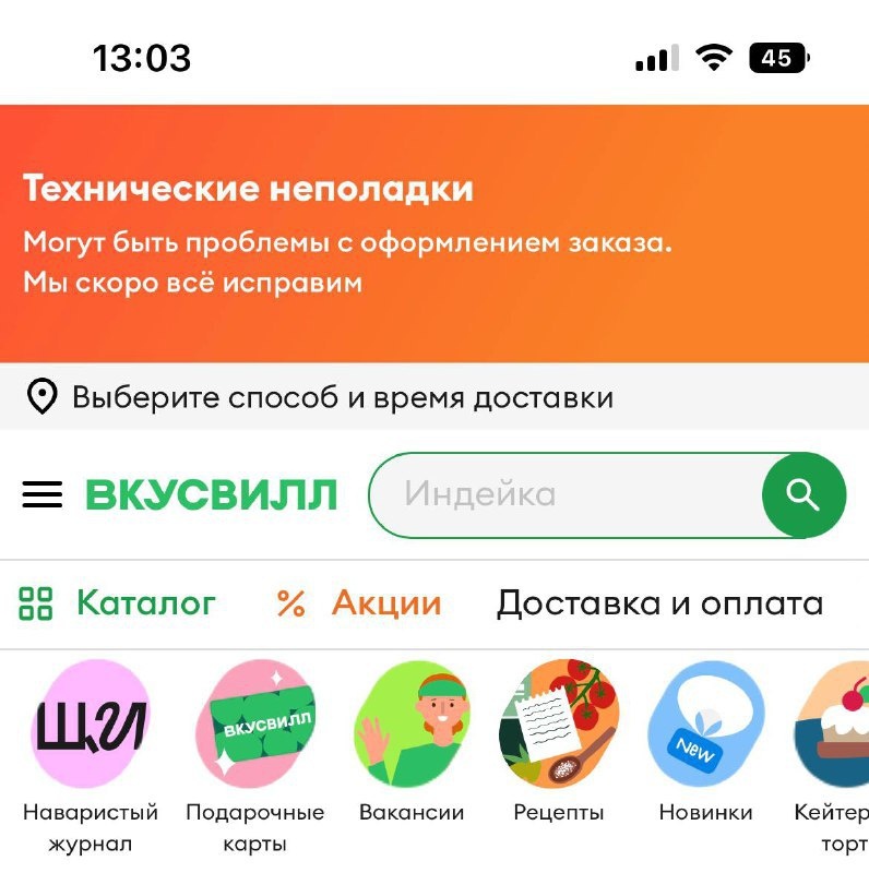 Сегодня у сети магазинов «ВкусВилл» произошел крупный технический сбой