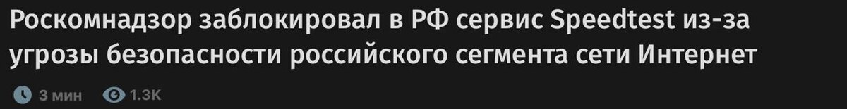 Сегодня все пишут про то, что SpeedTest заблокирован Роскомнадзором