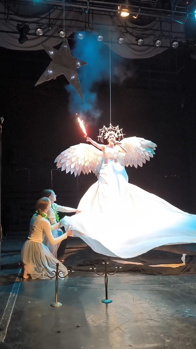 Так начинается еще один интереснейший спектакль, который мы посетили с ребятами. Это не просто спектакль, это проникновенная и щемящая сердце история, сотканная по мотивам бунинской «Иды». В ней, словно в рождественском калейдоскопе, переливаются осколки неразделенной любви, вихри музыки и танца, мерцание елочных огней и, словно чудо, парящий ангел.