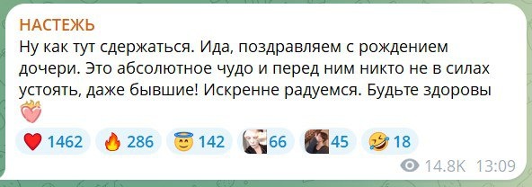 Природа настолько очистилась, что Настя Ивлеева зарыла топор войны и поздравила свою экс-бести Иду Галич с рождением дочки😍 Скрин: ivleeva360/Telegram Spletnik