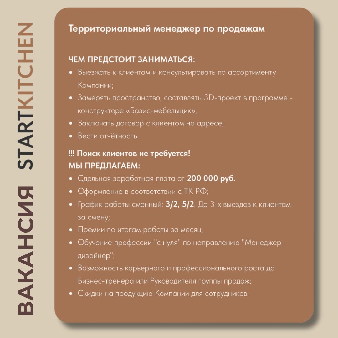 Присоединяйся к нам! Отправь свое резюме 📩personal@start-kitchen.ru