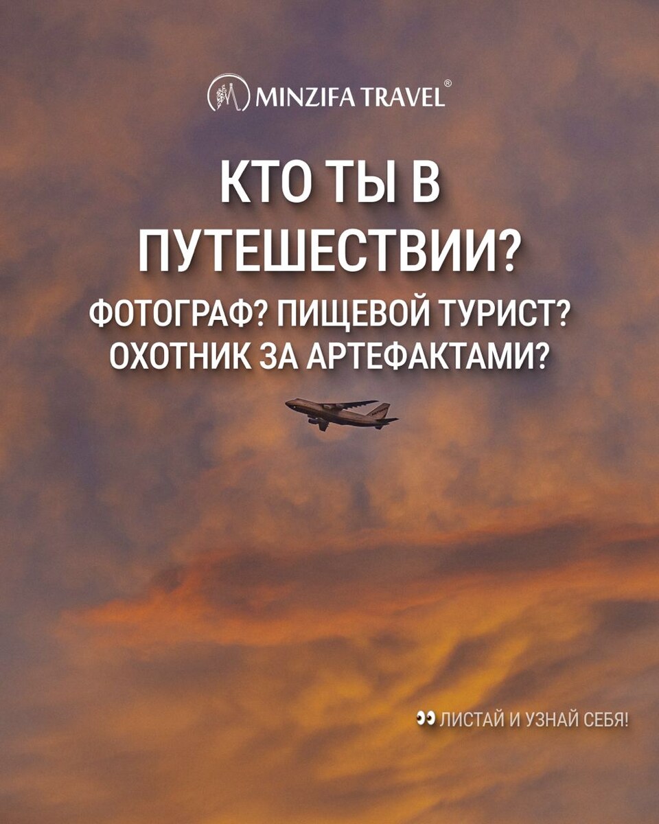Путешествия — это не только про маршруты, но и про то, какой ты в поездке. ⠀ 📸 Кто-то фотографирует каждый поворот улицы 🍽 Кто-то ищет, где вкуснее плов 🎁 А кто-то увозит с собой половину рынка ⠀ Мы собрали 3 популярных типа туристов. Узнай себя — и поделись в комментариях, кто ты: Фотограф? Пищевой турист? Охотник за сувенирами? 👇👇👇 Отмечай своего спутника — у него наверняка другой стиль 😄 #MinzifaTravel #ТипажиТуристов #Узбекистан2025 #Самарканд #Бухара #ПутешествуйСХарактером #SilkRoadVibes #TravelPersonality