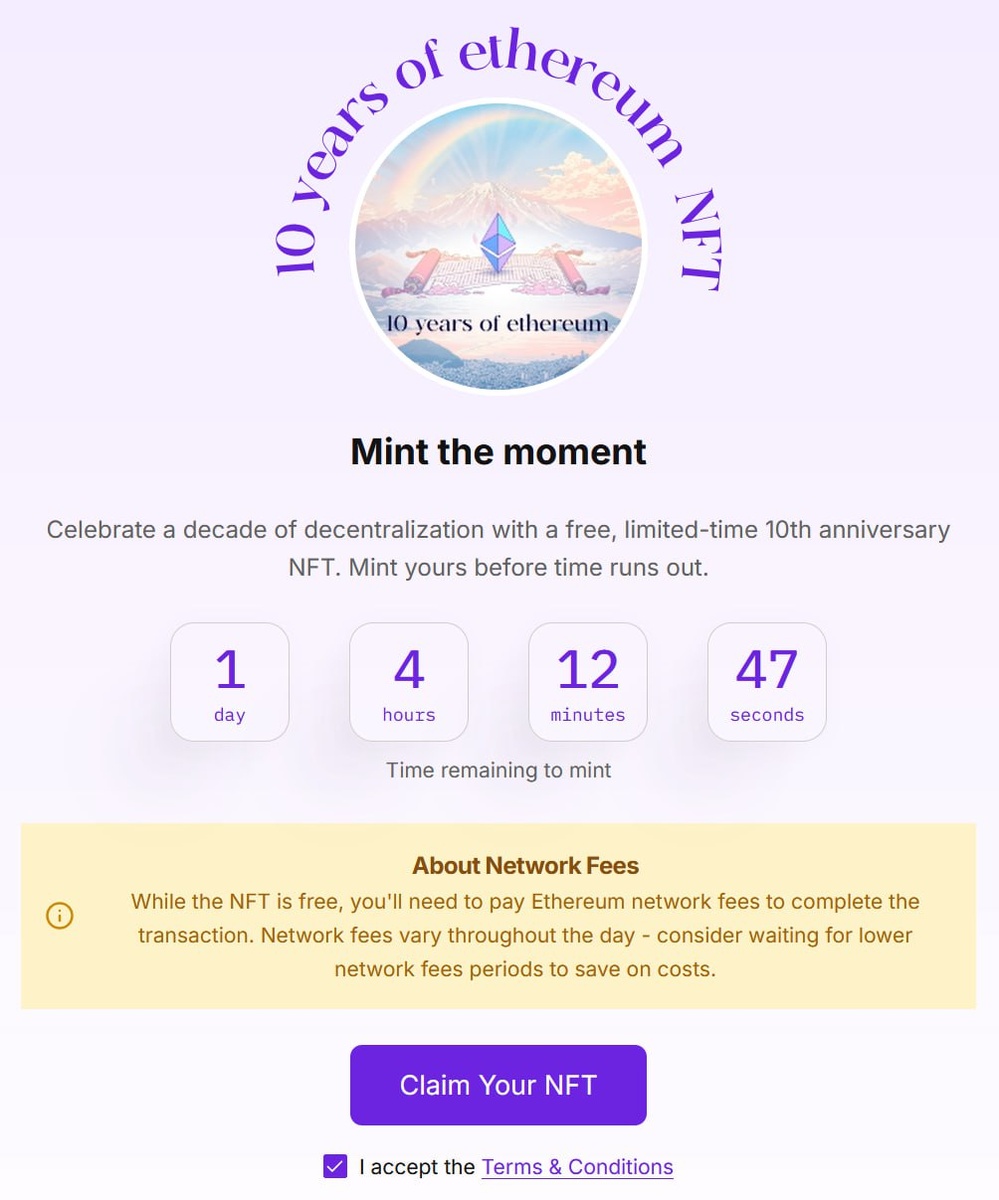 🔥Бесплатный NFT к 10-летию Ethereum! Как получить «Ethereum Torch