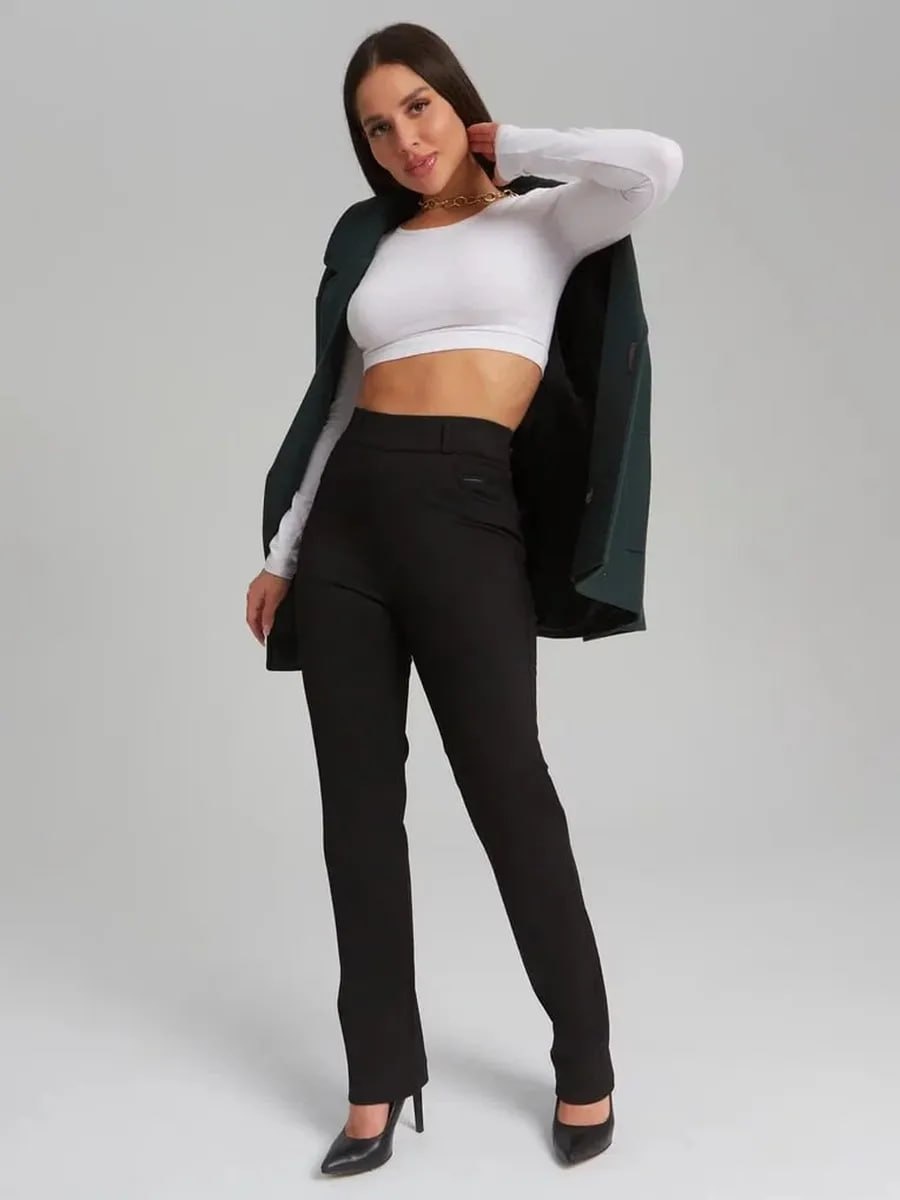 Классические, стильные брюки, имеют высокую посадку, зауженный крой, визуально удлиняют ноги. Удачно впишутся в гардероб и позволят создать множество восхитительных образов.