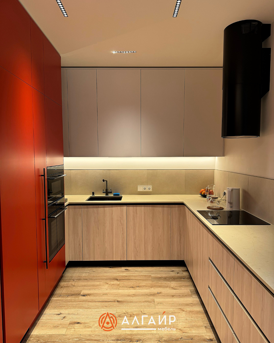 Функциональность, эстетика и стиль - всё это воплотилось в этом интерьере для одной замечательной семьи: ▪️ Матовые верхние шкафы в сочетании с текстурой светлого дерева внизу создают ощущение лёгкости и уюта. ▪️ Яркий фасад в насыщенном красном цвете добавляет интерьеру характер и глубину. ▪️ Вся фурнитура скрытая, с доводчиками, ничего лишнего, только чистые линии. ▪️ Встроенная техника. Удобно, стильно, технологично. Всё под рукой. ▪️ Лаконичные светильники добавляют уюта и создают мягкое зонирование. ▪️Стеклянный фасад с внутренней подсветкой для хранения бокалов и декора. Это не только практично, но и придаёт кухне атмосферу премиальности. Мы создаём кухни, в которых хочется проводить время. 💌 Пишите - с удовольствием обсудим ваш проект!