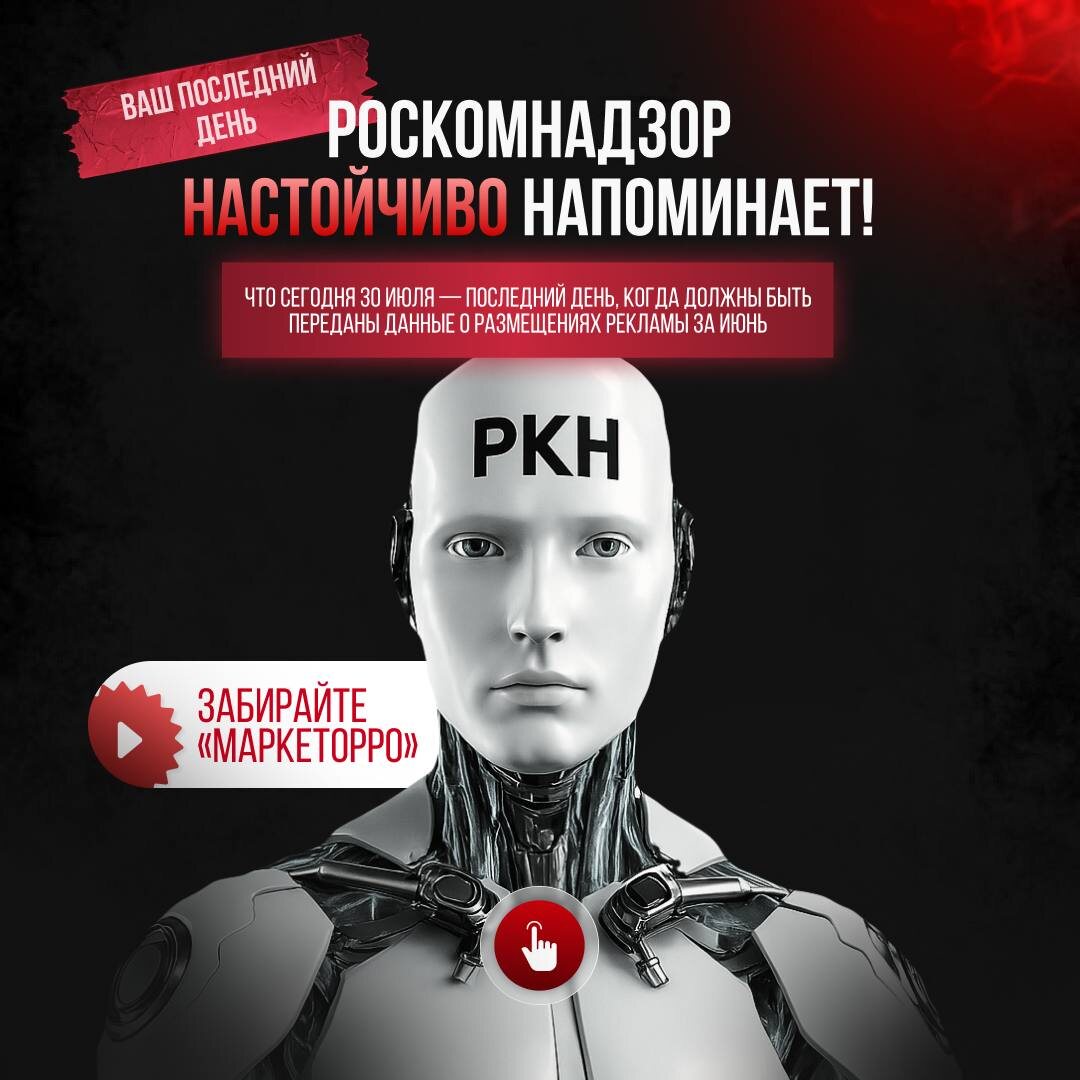 Что сегодня 30 июля - последний день, когда должны быть переданы данные о размещениях рекламы за июнь. Чтобы передать сведения, как это уже сделали 600К участников рынка, нужно: - Внести через ОРД отчеты о размещениях рекламы за прошлый месяц. - Проверить через личный кабинет ЕРИР корректность расчетов. - При наличии ошибки, внести правки через ОРД. Почему важно проверять корректность расчетов?! Потому что случается так, что при заполнении данных в ОРД участники могут перепутать заказчика и исполнителя. Поэтому начисления могут быть не так рассчитаны. Сложно, непонятно, муторно! Не так ли?! А вот у пользователей «Маркеторро» таких забот нет, потому что сервис всё делает сам: и маркирует, и отчеты вовремя сдает, и следит за всеми обновлениями в законе. Все в рамках 38-ФЗ. Достали мытарства с маркировкой? Забирайте «Маркеторро» https://marketorro.ru/ Реклама: ИП Боратиони Лаша Вахтангович, ИНН 230813390376, erid 2VtzqxabXpt