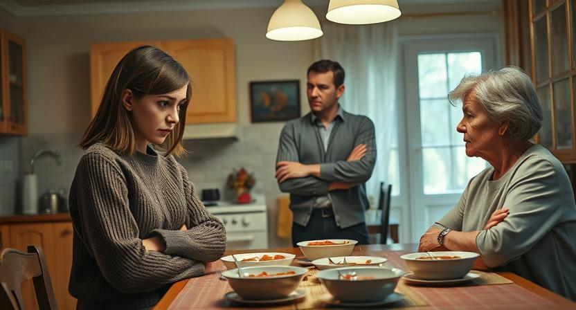 Елена встала из-за стола. Больше она не могла. Три года замужества, и каждый визит к свекрови превращался в пытку.