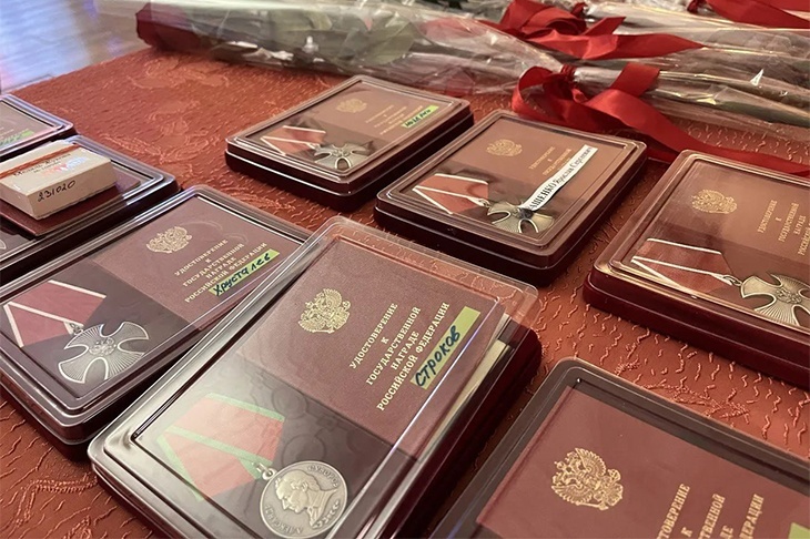 Сегодня, 30 июля, в Волжском Волгоградской области состоялась передача орденов Мужества родным и близким жителей города, погибших при выполнении воинского долга в ходе специальной военной операции. Церемония прошла во дворце культуры «Волгоградгидрострой». Указом Президента Российской Федерации за мужество, отвагу и самоотверженность 12 волжан были удостоены государственных наград. Орденом Мужества посмертно награждены рядовые Николай Безукладицын, Дмитрий Хрусталев, Александр Захаров, ефрейтор Александр Дзюбин, старшина Алексей Яковлев. До конца остались верны воинской присяге старший лейтенант Вячеслав Ноздрин и рядовой Ярослав Иващенко. Ордена Мужества сегодня передали их детям – Дарье Ноздриной и Льву Иващенко. Орденом Мужества и медалью Жукова посмертно награжден волжанин, рядовой Николай Юдин. Медали Жукова были переданы родственникам рядовых Станислава Баландина и Сергея Деришева. Медалью «За отвагу» посмертно награжден рядовой Александр Рылов, рядовой Алексей Строков – медалью