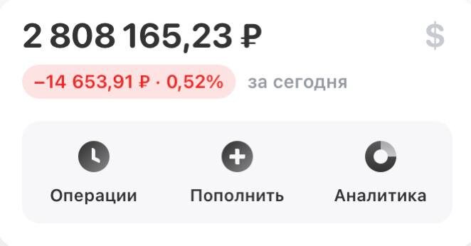 Продал часть Русал. Со вчерашней покупки он вырос всего на 2%, но на безрыбье и рак рыба. А рынок пока падает, и приходится удить такую мелочевку, но это не должно отменять роста портфеля . И не отменяет. Портфель потихонечку помаленечку растёт , даже не смотря на падение рынка . Ну а на росте тем более возьмём своё . Стратегия активная 3.0 предусматривает ровный и плавный рост портфеля в отличие от агрессивной пиратской стратегии, где либо сильный рост, либо сильное падение или пассивной долгсрочной , где роста можно ждать долго и нудно , и защищает портфель от сильного падения на коррекции рынка . На данный момент расклад по портфелю такой: Фонд денежного рынка 10% Кэш 5% В акциях на 85% от портфеля Не является индивидуальной инвестиционной рекомендацией. Если у вас возникли какие то вопросы по компаниям, экономике, моей стратегии инвестирования, задавайте их в комментариях к посту, буду рад на них ответить. Обзор моего портфеля и обзоры по компаниям вы можете читать в моем теле