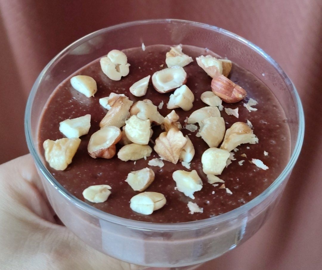 Если бы не желание быть здоровой и стройной я бы так и не попробовала сотни рецептов. Сегодня созрел очередной, причем из головы. Нашла подобный в интернете. Но так как мне уже не 20 лет,то интересно экспериментировать и вносить свои правки на глаз. Задача была сделать максимально низкокалорийный и нежный пудинг. Покажу даже сравнение по КБЖУ с магазинным. И расскажу как его ещё улучшить. Всего 4 ингредиента и 10 минут вашего времени: ⏩ Молоко 2,5%- 350мл (одна стандартная кружка для чая) ⏩ Кукурузный крахмал - 28 грамм (примерно 3 столовые ложки с горкой) ⏩ Какао - 12 грамм (примерно 2 ложки). ⏩ Сахар - 40 грамм (примерно 3 столовые ложки ) Смешала всё, довела до кипения, постоянно помешивая. Когда загустело, остудила, налила по креманкам. Остудила в холодильнике 2-3 часа. У магазинного пудинга состав оставляет желать лучшего. Там куча Ешек,и генно-модифицировнанный крахмал. Ни о каком здоровье и речи не может быть ,если есть такую химию регулярно. А в домашнем и жиров в 2 раза