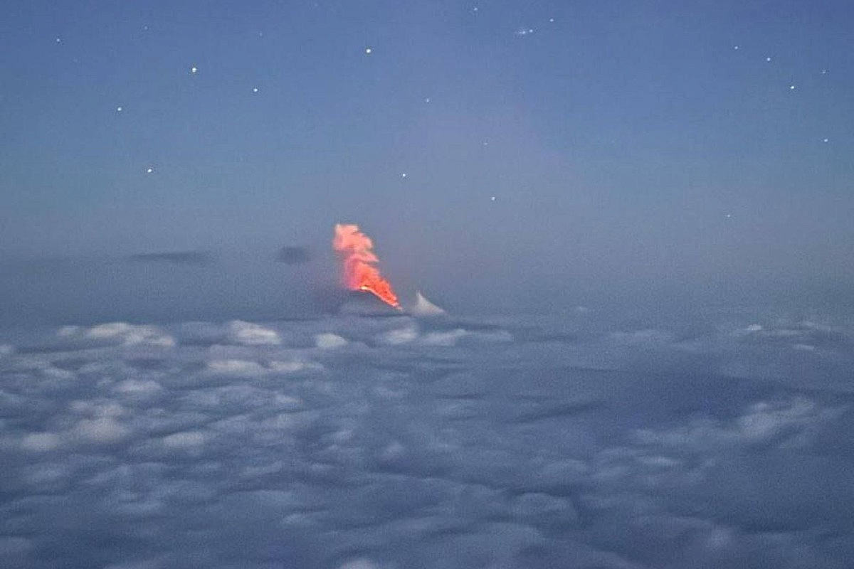 свечение кратера и серию взрывных выбросов. Одновременно вулкан выбросил пепловый столб на высоту 3 километра, шлейф которого протянулся на 58