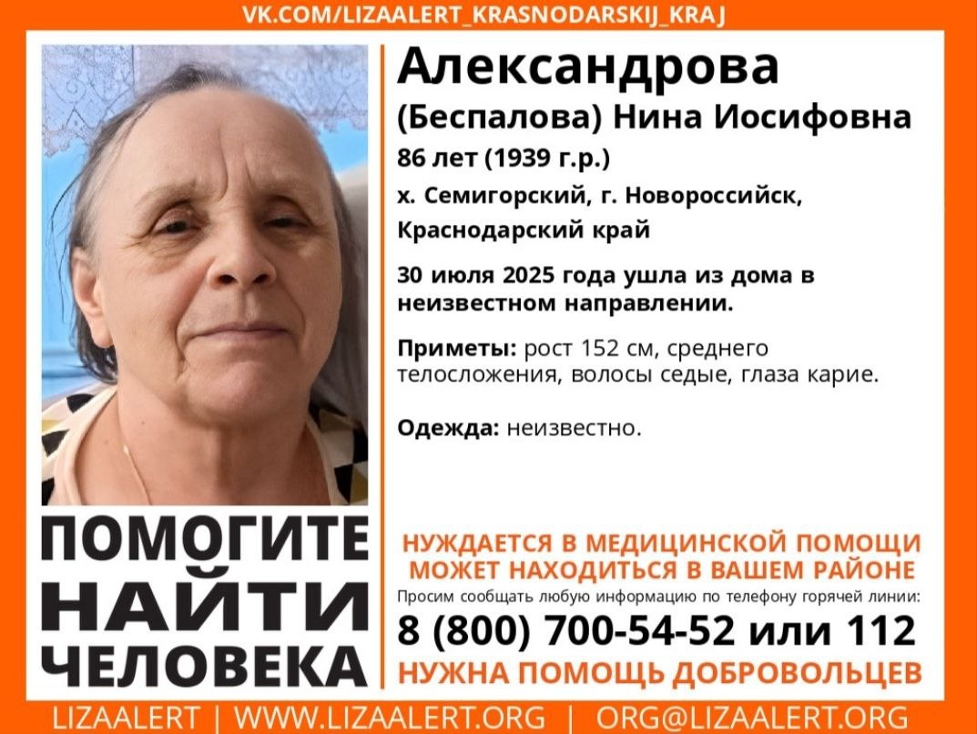 #Пропала #Александрова (Беспалова) Нина Иосифовна, 86 лет