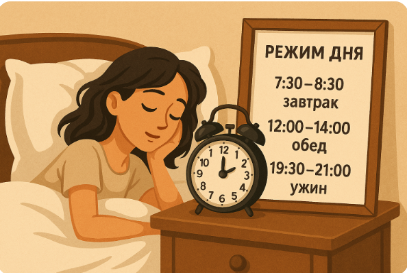 Принцип остаётся прежним: три основных приёма пищи с интервалом в 4–6 часов, адаптированных под ваш график.