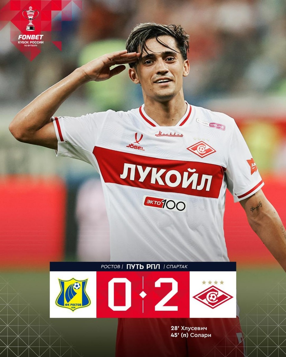 ⚽️🥩 «Спартак» на выезде обыграл «Ростов» в матче 1-го тура Пути РПЛ Кубка России