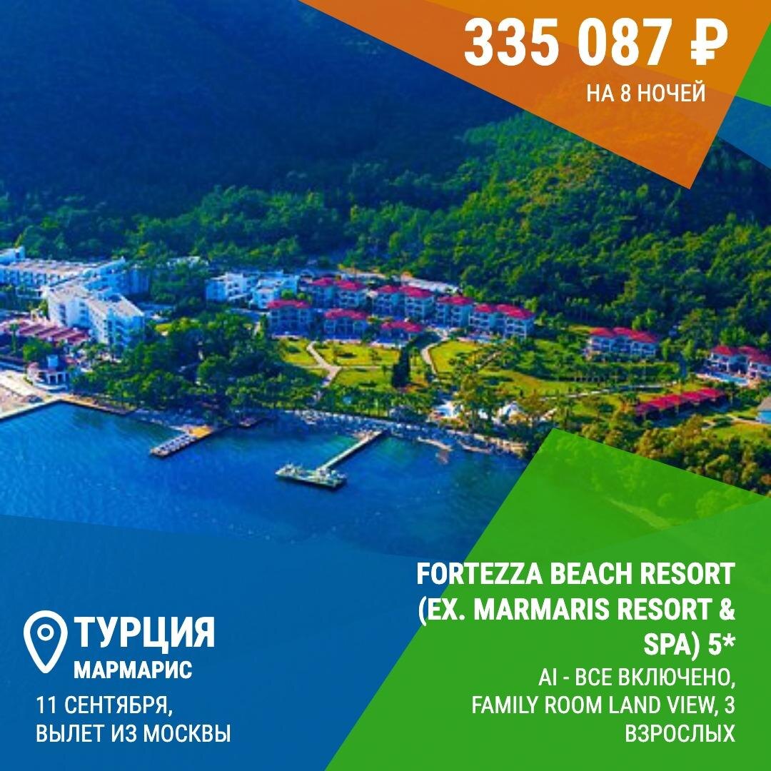 Fortezza Beach Resort (Ex. Marmaris Resort & Spa) 5* Турция, Мармарис‼️ Наш отель расположен на территории 65.000 м2, в центре бухты Хисароню, где природа представлена во всей своей красе. При строительстве был сохранен естественный лес и пляж. Наш 5* отель оказывает услуги по концепции «Ультра все включено». Во всех номерах есть балкон, большинство номеров имеют вид на море. Номера класса Deluxe состоят из 9 блоков, и у каждого блока имеется свой собственный бассейн. Номера Deluxe, расположенные на нижних этажах, имеют террасу, которая выходит к бассейну. В номерах Deluxe Superior имеются джакузи. Пляж протяженностью 550 м расположен на берегу залива Хисароню. С главной террасы ресторана Kalispera, снэк ресторана и ресторана a la carte открывается прекрасный вид на море и бухту Хисароню. На основной территории - один большой главный бассейн, один релаксационный бассейн и один д
