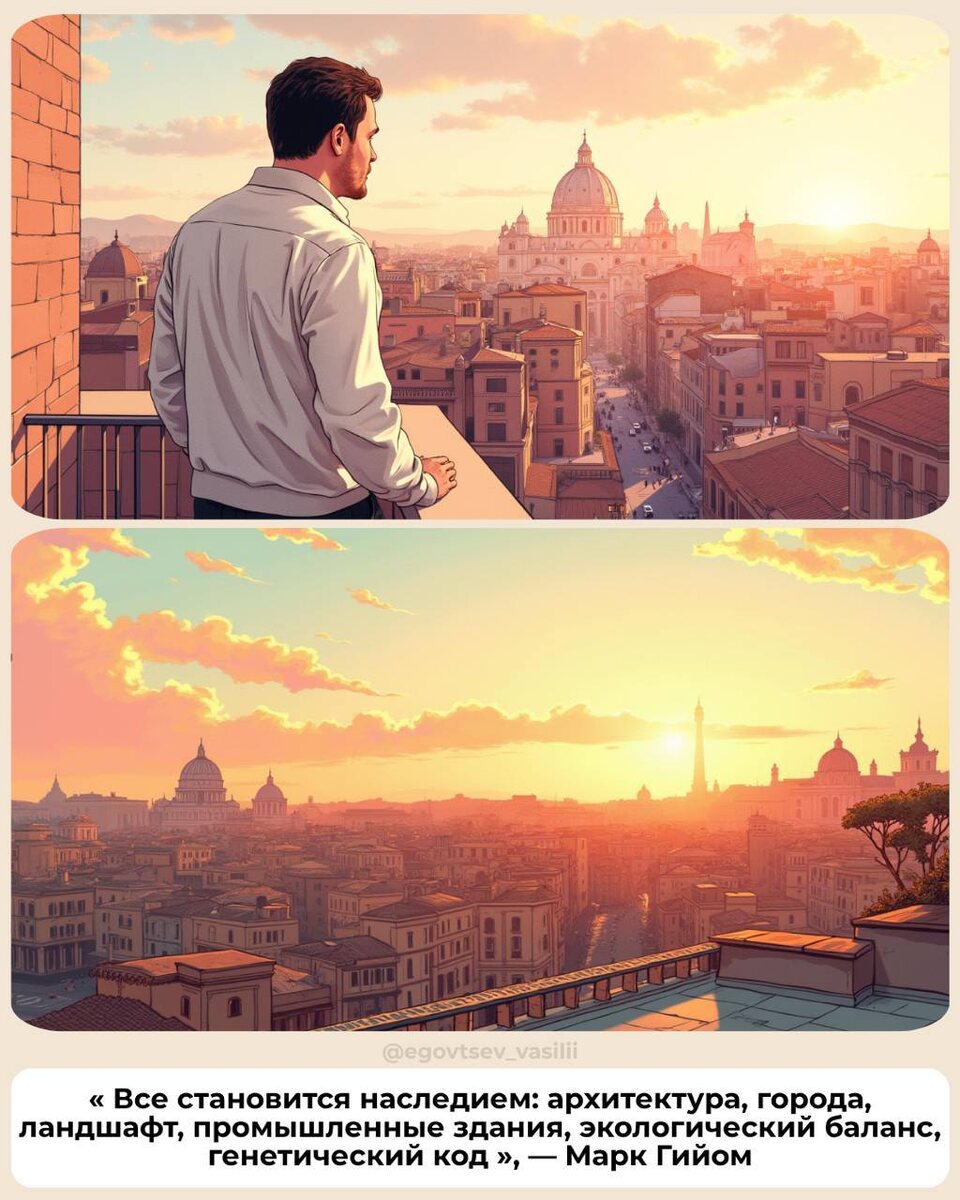 Люди приходят и уходят. А балконы остаются. На этих балконах стояли разные — одни мечтали сбежать, другие — построить империю. Третьи просто курили молча, глядя на закат. И всё это — осталось. В кирпиче. В тени, которая ложится на мостовую. В линии горизонта, которую больше никто не вправе тронуть. Мы думаем, что живём в квартирах. Но на самом деле — в решениях своих предков. В их планировках, их взглядах на эстетику, на воздух, на свет. Наследие — это не потом. Это сейчас, просто оно не имеет кнопки «отменить». Так что когда выбираешь локацию, фасад, этаж — ты не выбираешь для себя. Ты выбираешь, что будет стоять здесь, когда тебя уже не будет. — Василий Еговцев