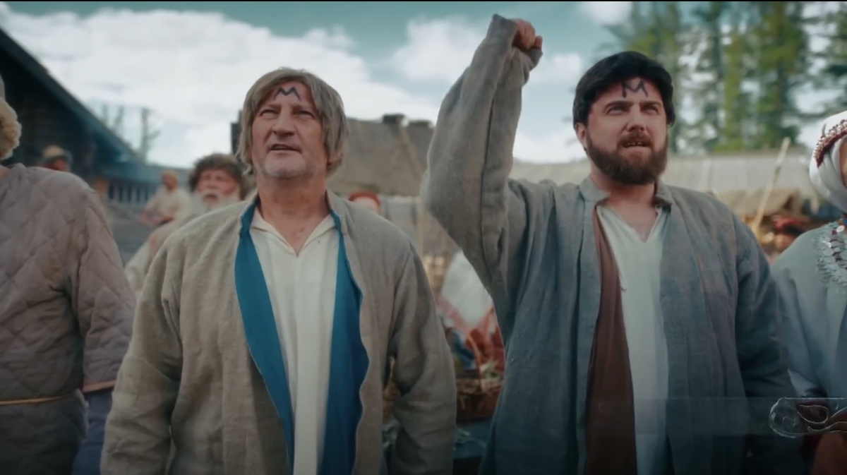 После просмотра первого сезона «Витязей» я сделал внезапный вывод, что легендарная «Дружина» - неплохой приключенческий сериал. После первой же серии новых «Витязей», начинает казаться, что они же старые 2023 года - очень даже и ничего. Боюсь теперь представить каким будет 3-ий сезон… Где-то за городом на лугу поставили эшафот, возле него толпа народа. Зачитывают приговор, а в толпе у нескольких мужиков на лбу намалевана буква «М». Еще среди людей мечется некий юноша, у которого в руке транспарант с буквой «М». Ну, вот режиссер сам подставляется - неужели ему неизвестно какой у нас есть популярный термин на букву «М»? Все ждут какого-то Миракула (это он и есть на букву «М»), который должен во исполнении пророчества прийти в Новгород и стать посадником. На эшафот затаскивают трех приговоренных, у которых на голове предметы на букву «м». Мешки, то есть. А это наши старые знакомые - Белогор (он же Тугодум), Агафон и Варун. Их и приговорили за что-то. Агафошка усиленно крутит веревки… И ту