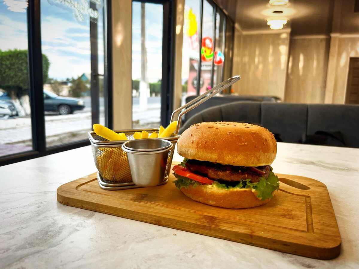 бургер перекус в местной забегаловки, с улицы она так се выглядит, но тут кыргызстане по всюду готовят невероятно вкусно, даже на вид в сомнительных заведениях, у Меня обычно чуйка на топовые места