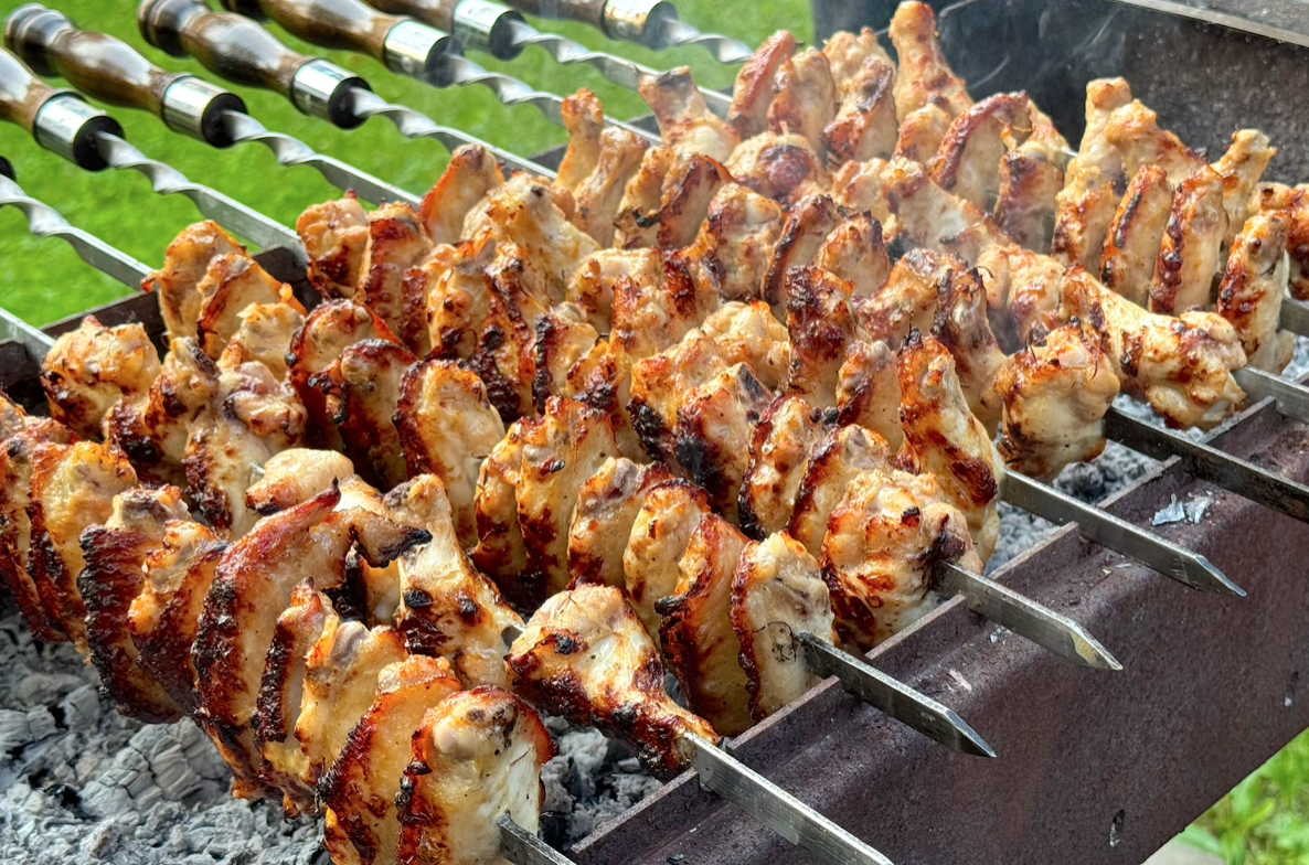 В этом году мы у мангала появляемся всё реже: лето нас «балует» жарой под +30°C — и стоять у огня при такой температуре как-то совсем не хочется. Но это был выходной, и у нас был повод собраться всей семьёй. К восьми вечера, когда зной немного спадает, мы всё же вышли на улицу, чтобы пожарить что-нибудь вкусное.