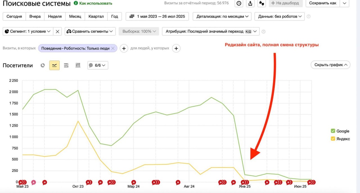 Тут про кейс прочитал - ребята сделали новую версию сайта, учли все возможные проблемы с миграцией (url/redirects) и т.п. и... итог на картинке :)