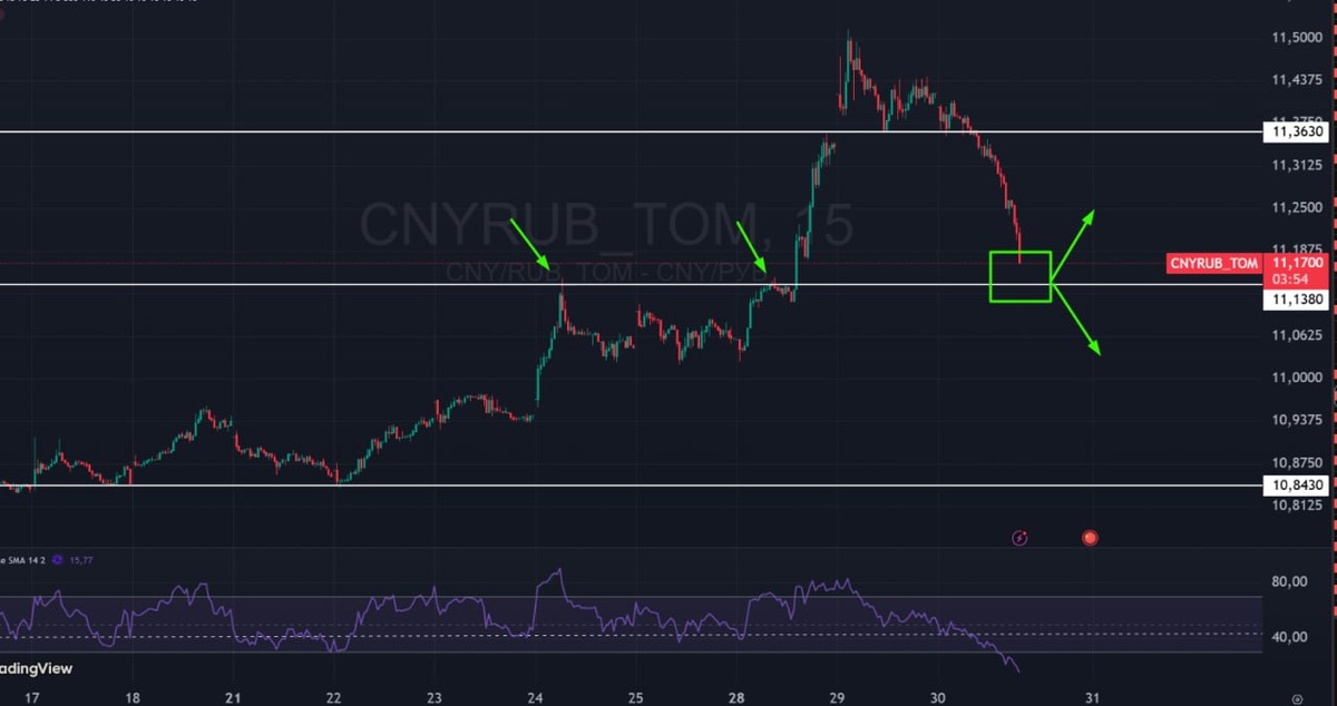 🔤 Юань-Рубль: обновление! 🟢 11,36 сегодня пробили и уже подходим к поддержке 11,13! Все внимание на нее. Если это все было спекулятивным разгоном, то цена пробьет и эту поддержку на днях. Если же будет замечена бычья сила, значит у нас действительно родился тренд вверх. к котором получили откат. 🚗 Наблюдаем! Но я все еще считаю, что весь рост был энерционно-хомяково-спекулятивным, и требует жесткой посадки. #юаньрубль #прогнозрубля #юань #рубльдоллар #CNY #CNYRUBF #CNYRUB #bogdanoffinvest